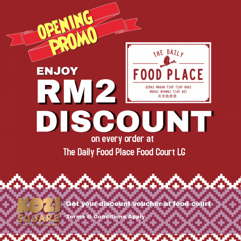 Exciting NEWS! Spreading more joy to everyone! Now at the Daily Food Place Food Court (LG) is offering a RM2 discount on every order. Come and collect the discount vouchers at the food court counters today.